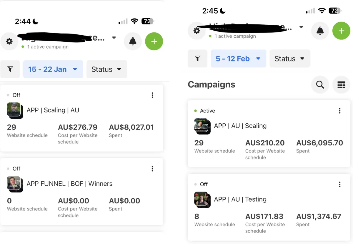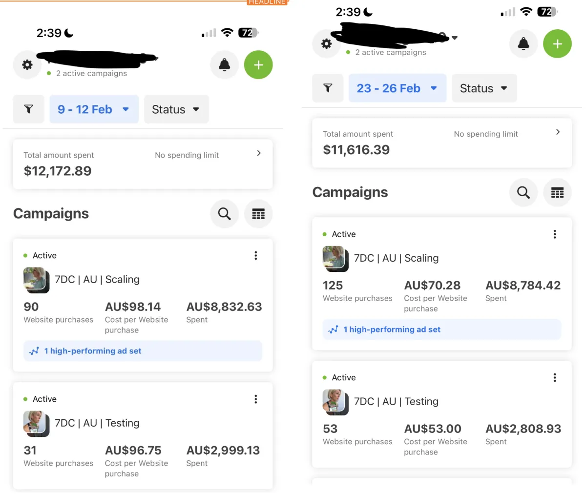tHE WINNING ADS FORMULA lowered our cost per purchase from $96.75 to $53.00. We got 35 more purchases with less ad spend!