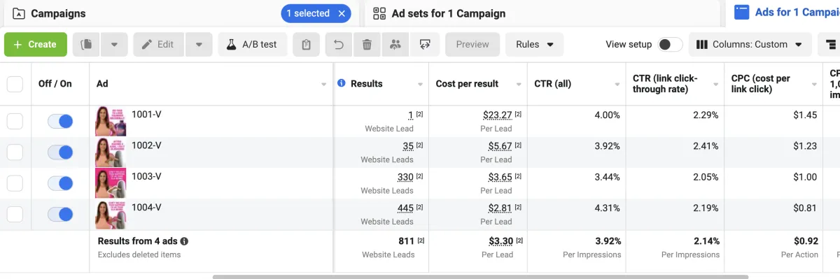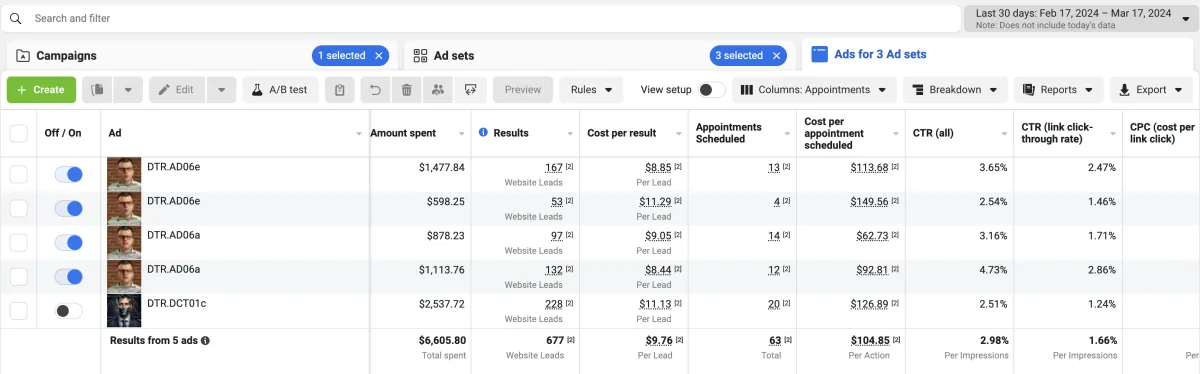 Using the wINNING ADS FORMULA (WAF), I generated $3.30 LEADS AND $32 APPOINTMENTS